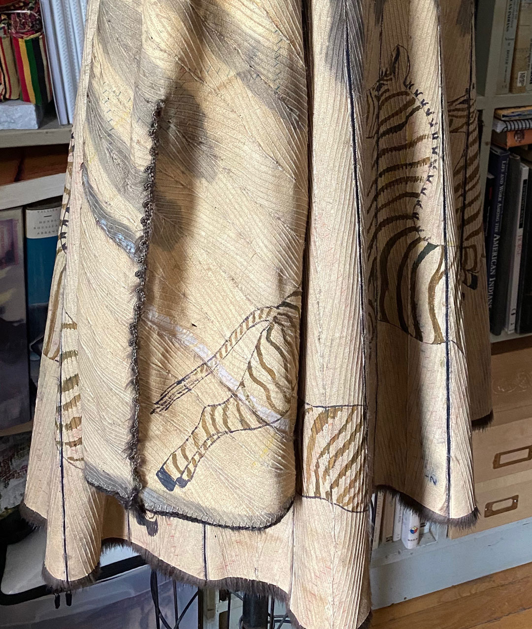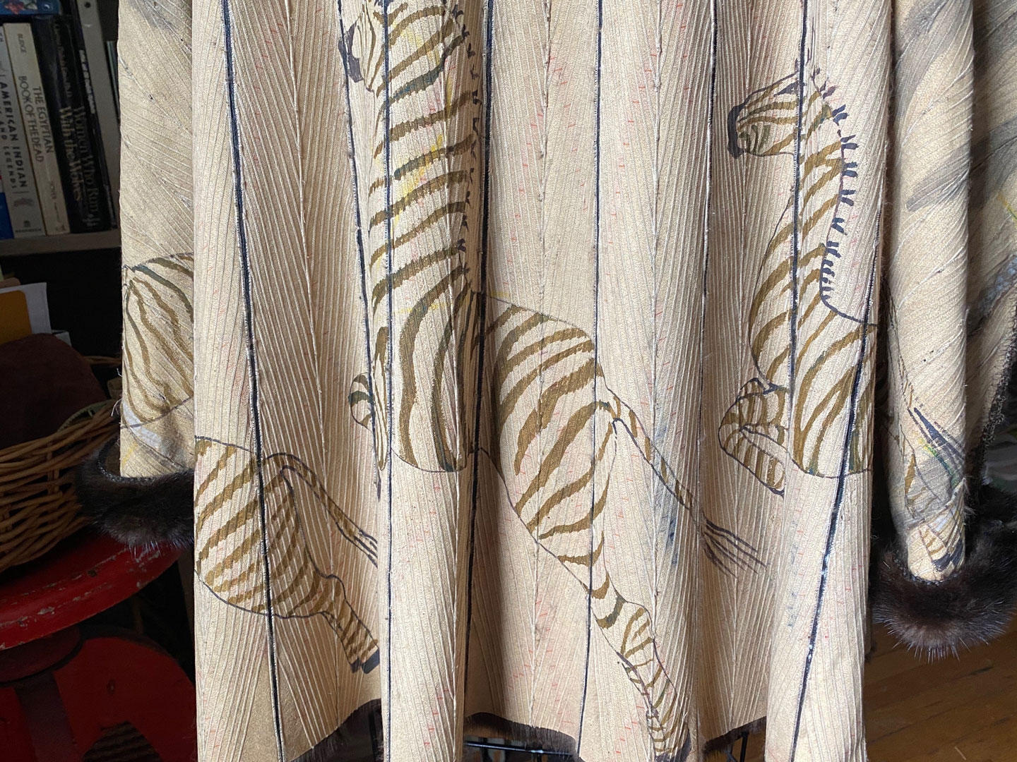 The skin side is illustrated with Zebras, while the dark mink side can be worn for it’s original purpose, pure luxury.