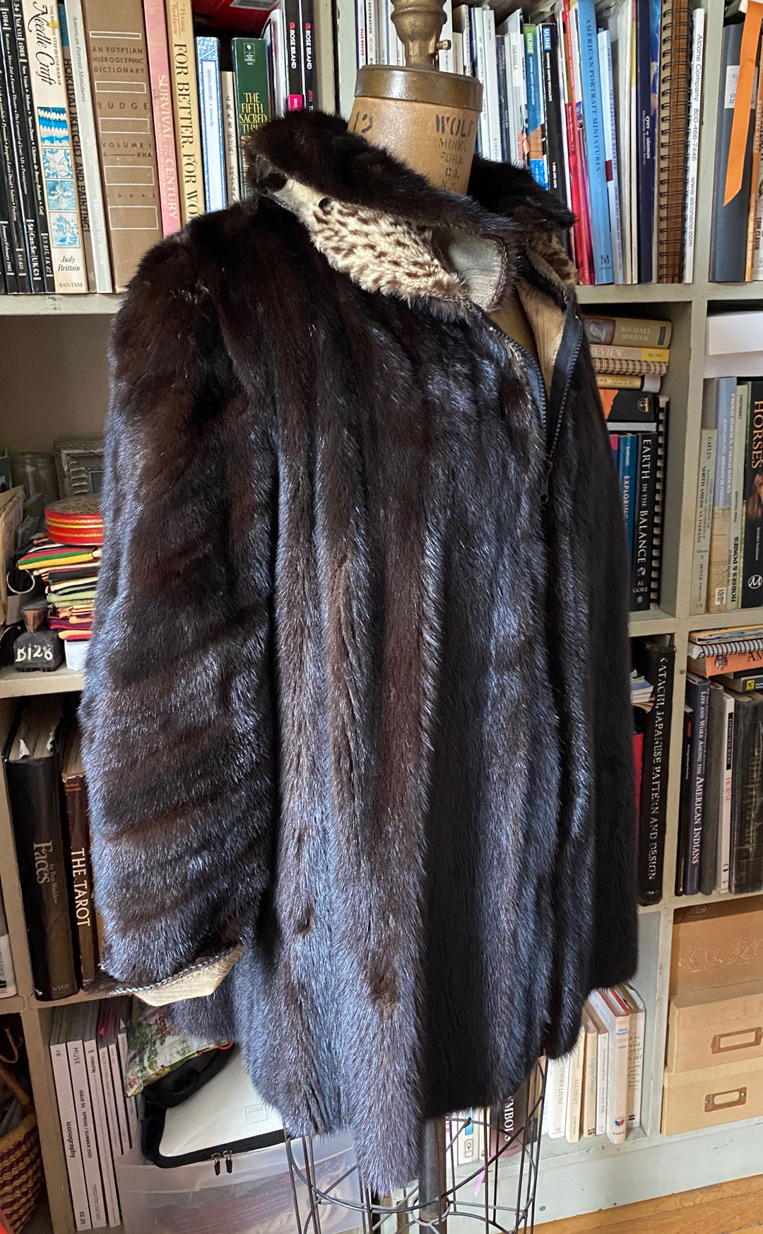 Lynne’s coat belonged to her Mother Sylvia. To honor her, both Lynne and I see the importance of giving this classic fur a new look that belongs in the 21st century. It also functions as two coats, as it is reversible.
