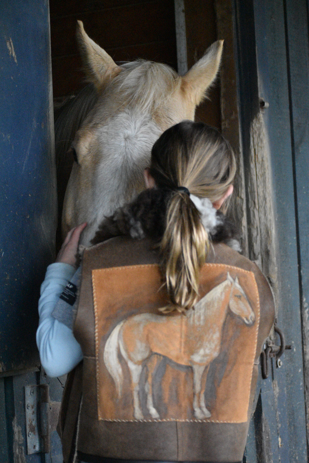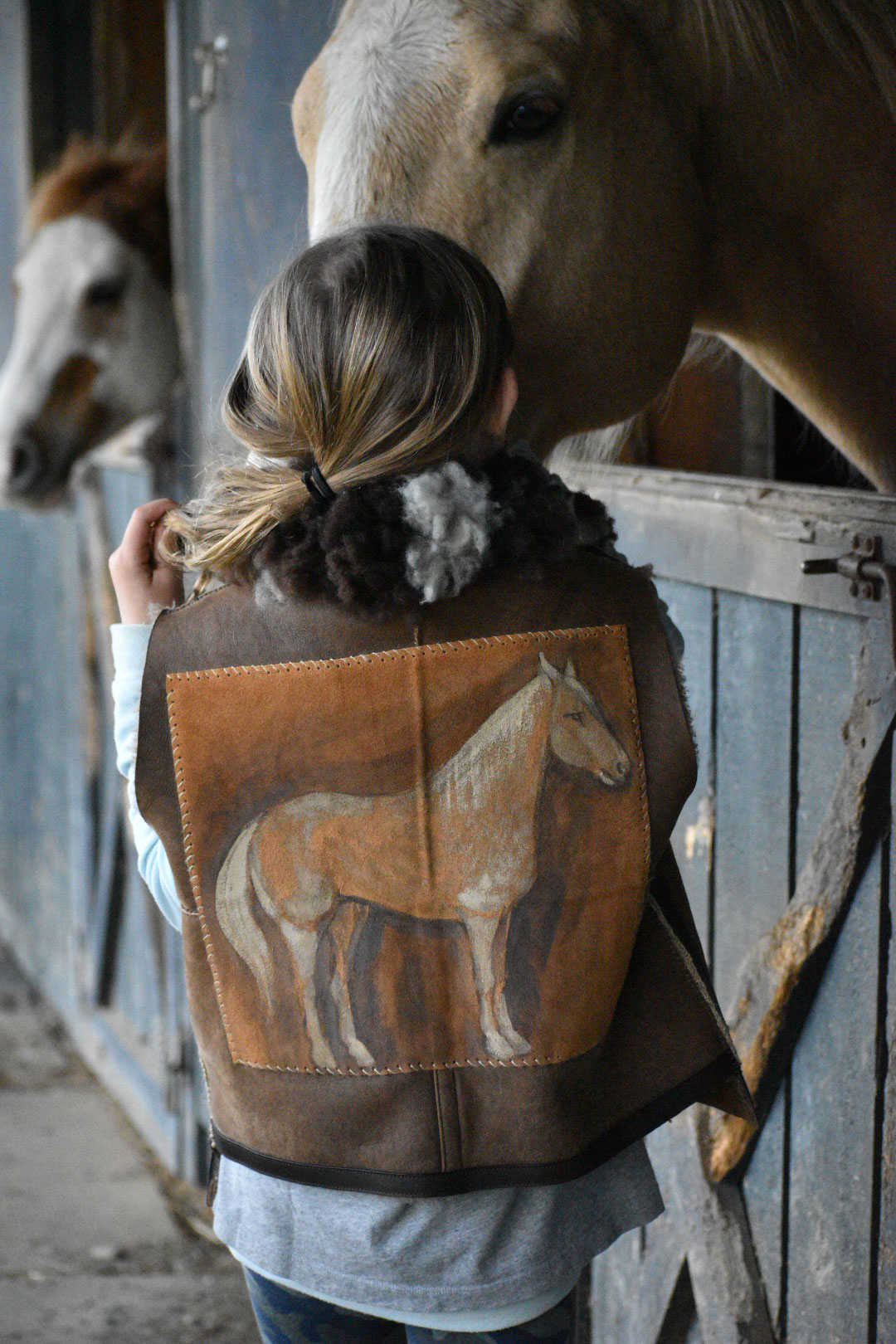 My favorite place for photo shoots are on my friend Cari’s horse farm. It’s Teddy’s favorite place too, for riding lessons and to balance out her daily life in the city. Her father Simon saw the flipping fur product and imagined a garment for keeping Teddy warm while riding her favorite horse Moose.